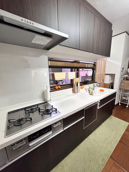 また、ご予算の関係でタイルの上からキッチンパネルを張る施工をしておりますが、