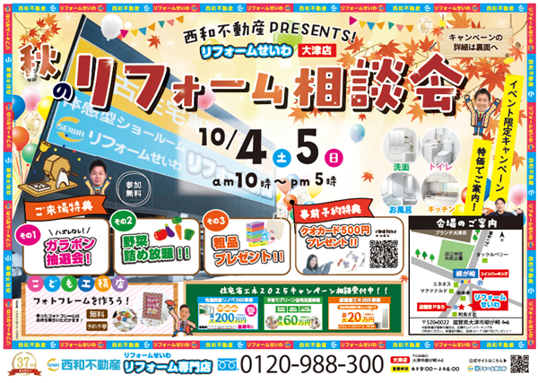 皆様こんにちは!本日から二日間、大津店ショールームにて秋のリフォーム相談会が開催🥰!相談会では、お得な商品をご用意!来場特典もございますので、ぜひブランチ大津店ショールームに足を運んでみて下さいね✨