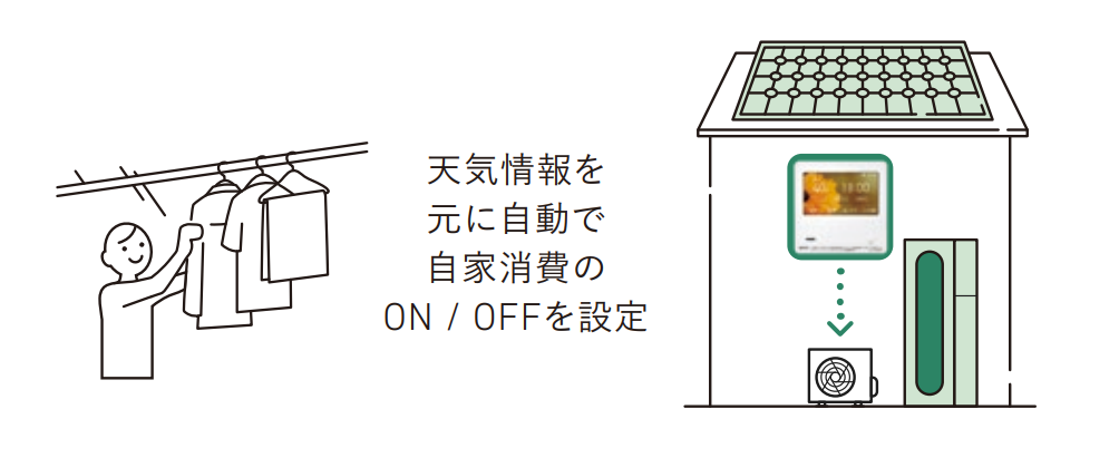 日本気象協会の天気情報と連動し、晴れの日は太陽光で発電した電力を使って自動でお湯を沸かす「おてんき自動貯湯モード」を搭載☀