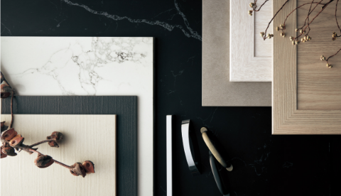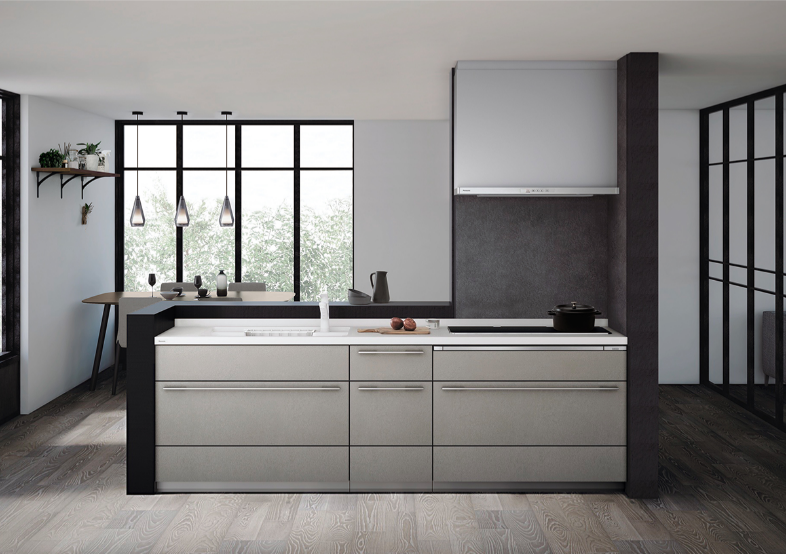 扉柄は約100種類と豊富に揃い、天然石のような質感を持つ「グラリオカウンター」や、インテリアと調和する木目柄まで、空間全体をラグジュアリーに演出します✨