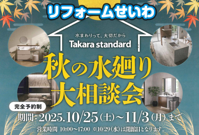 タカラスタンダード草津ショールームにて「秋の水まわり大相談会」を開催いたします✨