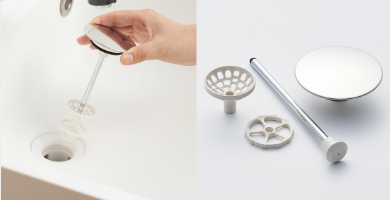 排水口まわりの継ぎ目を少なくし、フタや軸を簡単に外せる構造💡