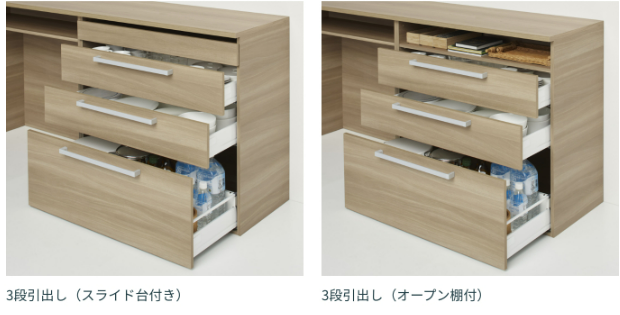 しかも、キャビネットや引き出し、オープン棚などを自由に組み合わせられるから、ライフスタイルにぴったりの収納をつくることができるんです🥰