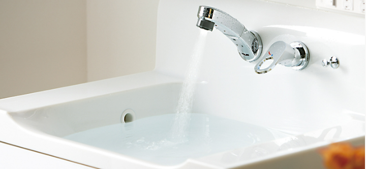 水栓根元に水が溜まりにくく、衛生的です。洗顔やちょっとした洗い物もスムーズに行えます。