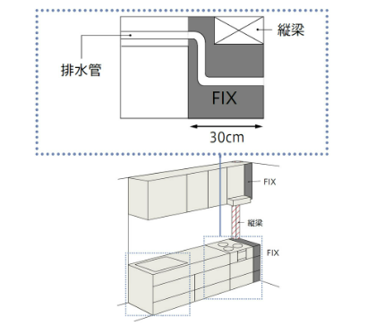 配管スペースをキャビネット内に確保しているので、配管の位置を大きく変えなくても取り付けがしやすいのがポイント💡工期や費用の無駄を抑えつつ、きれいに仕上がります🙌✨