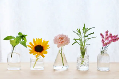 → たくさん飾るよりも、空間に“余白”を残して1〜2輪を飾ると上品な印象に。