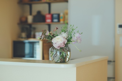調理中や食事の時間にも花が目に入る位置に置けると、日常が少し特別に感じられます。